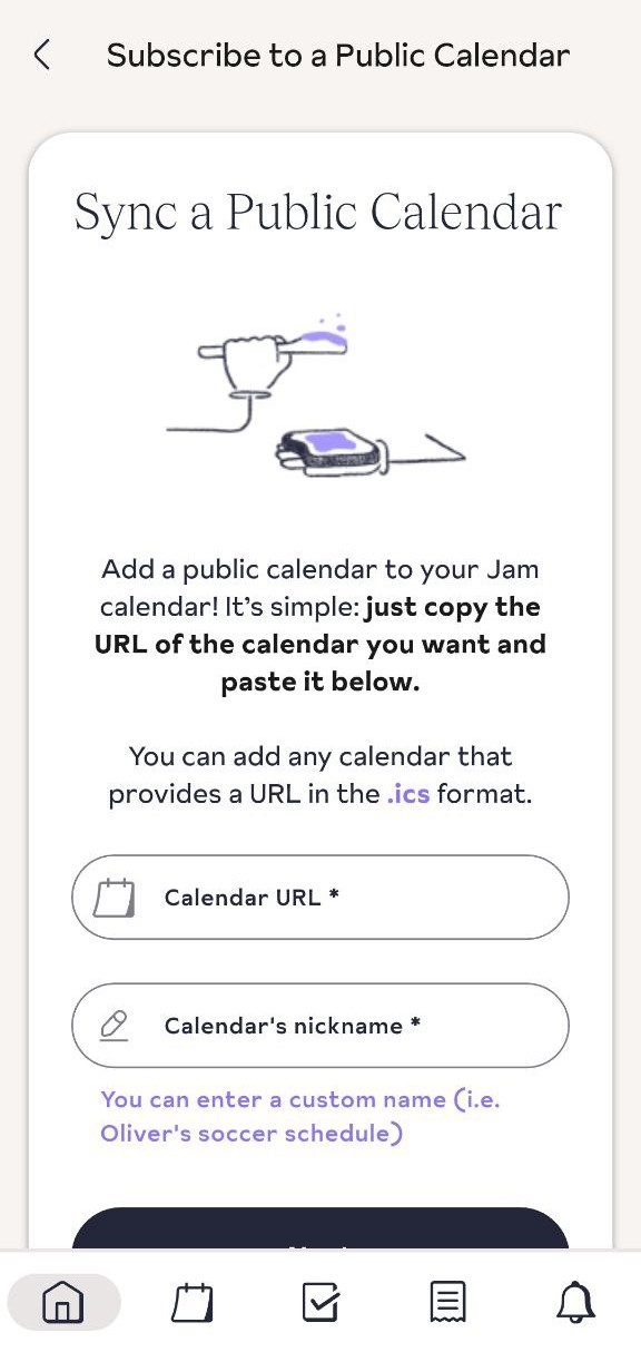 Follow the same instructions for adding a public calendar to your JAM Family Calendar (steps 1–7), but use the .ics link for your country’s holidays.