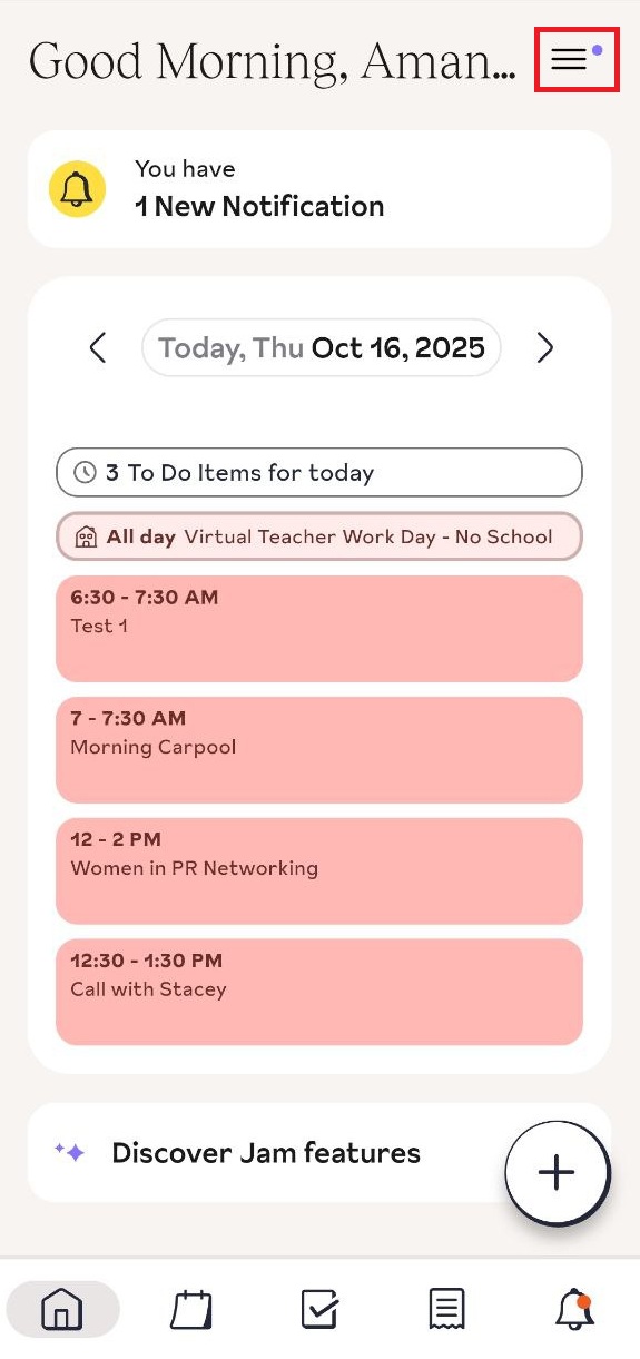Start by clicking on your profile icon at the top right corner of your JAM Family Calendar.